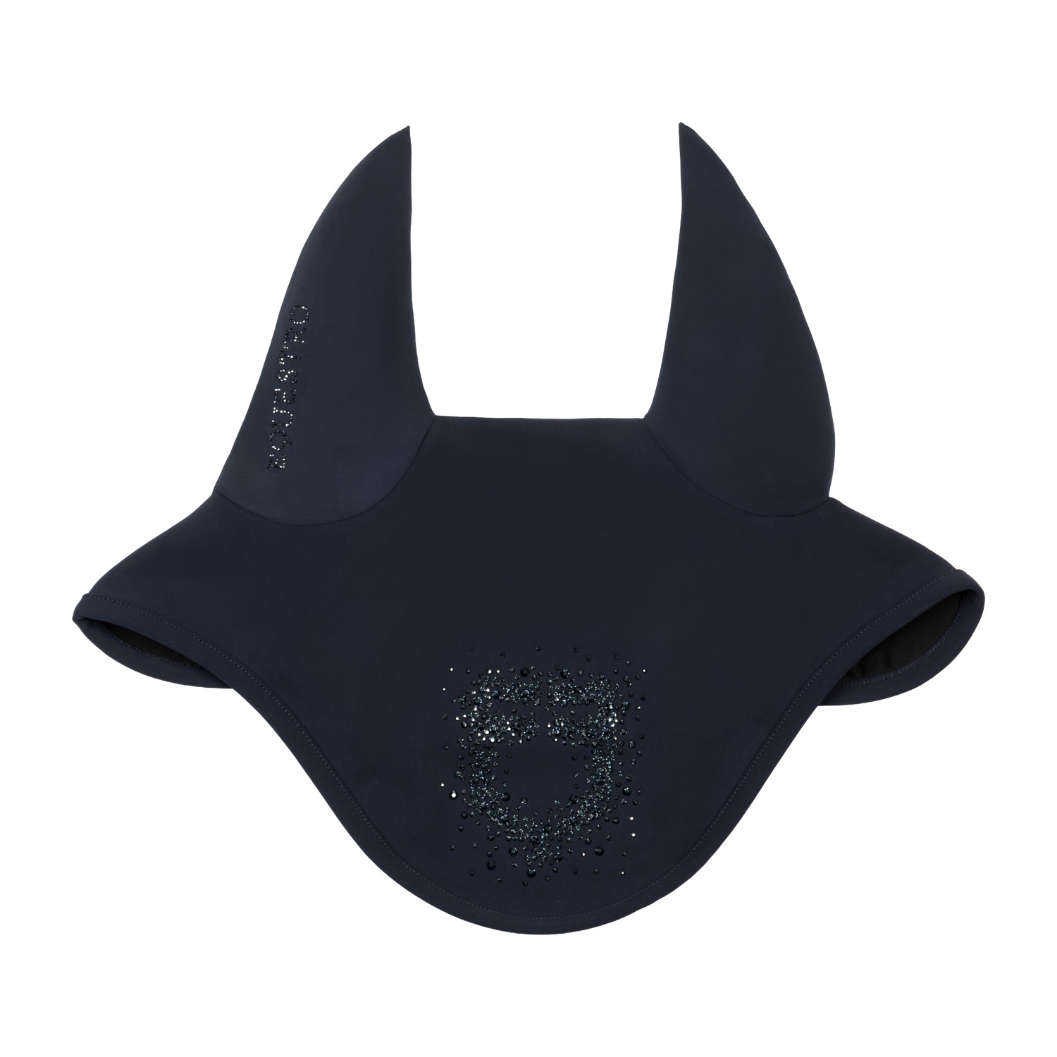 Hochwertige Equestro Fliegenhaube aus weichem Stoff mit elastischen Ohren und edlem Strass-Logo. Diese Fliegenmütze vereint stilvolles Design mit maximalem Komfort und Funktionalität – ideal für Training und Turnier.