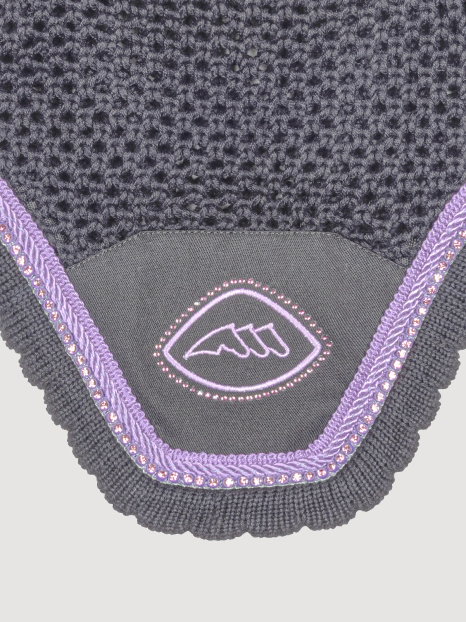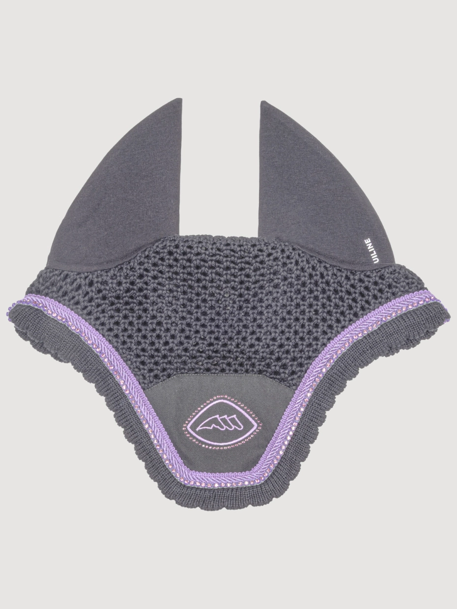 Equiline Fliegenhaube EQGloc in Grau mit lila Glitzer