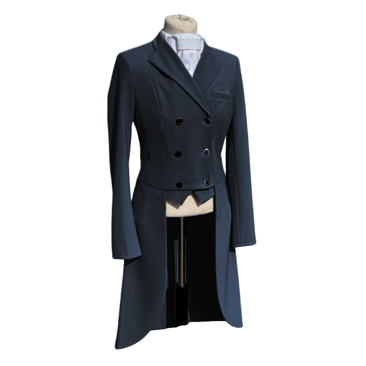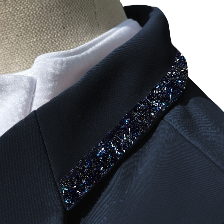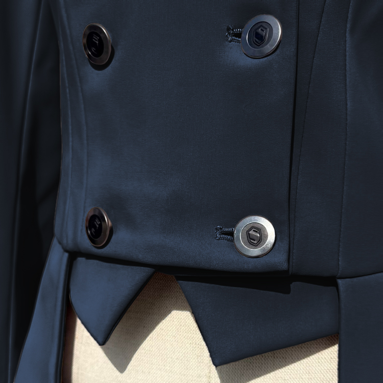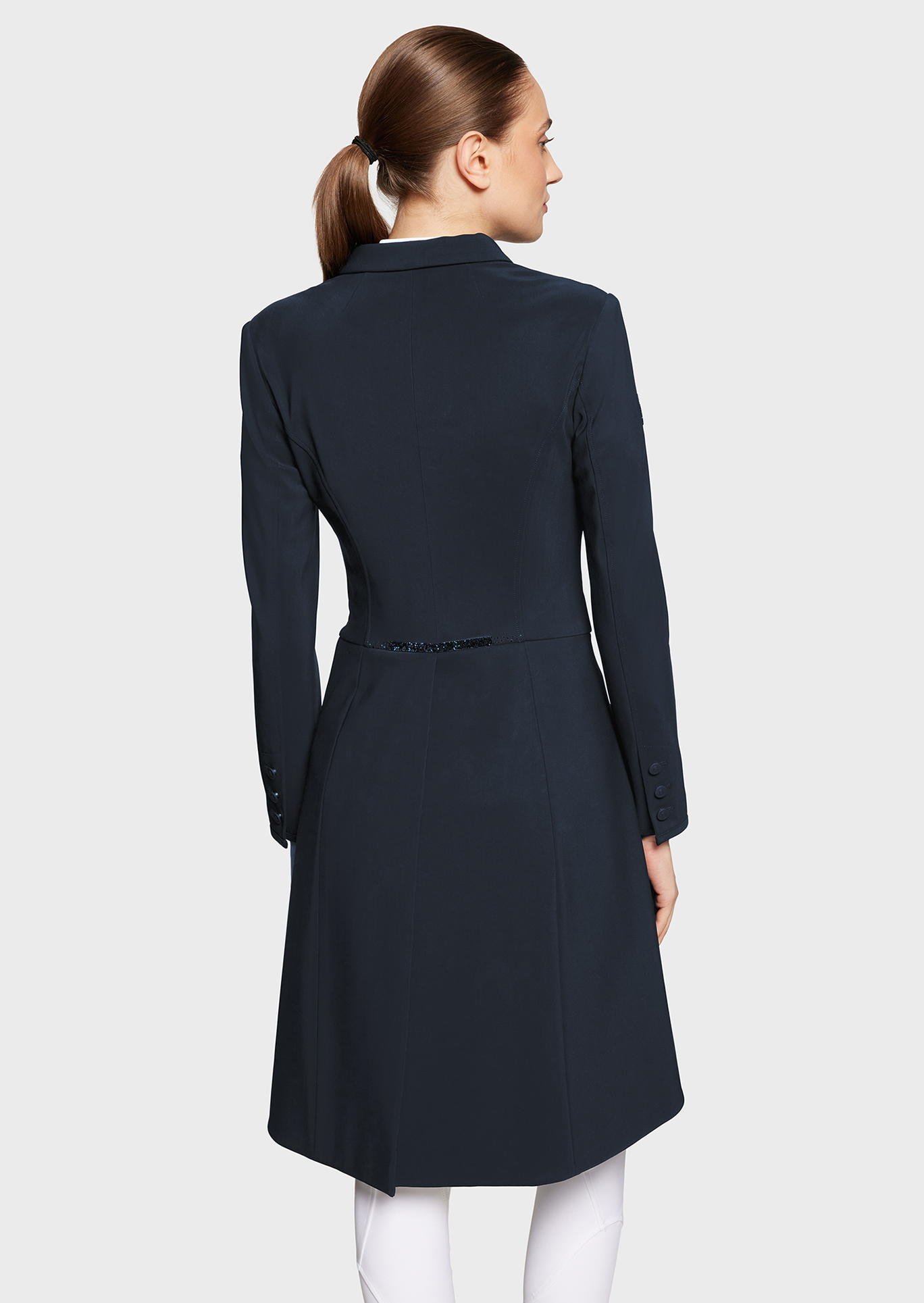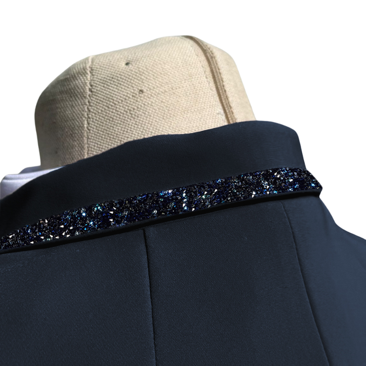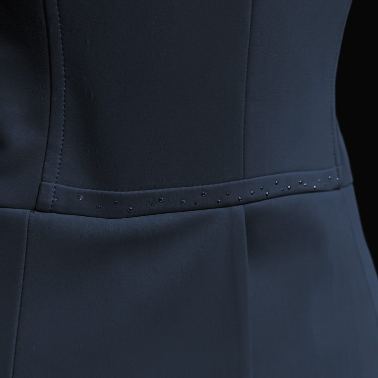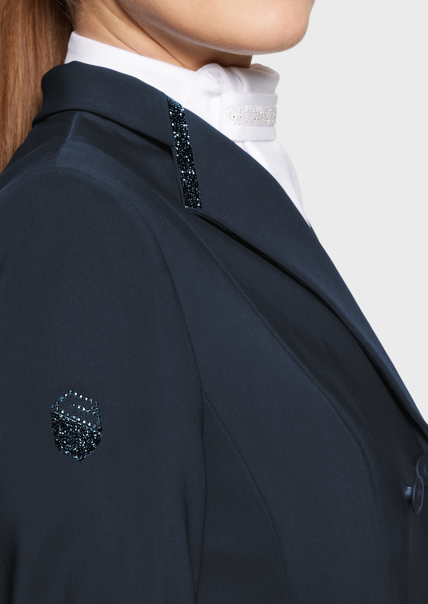 Der figurbetonte Schnitt unterstreicht eine elegante Silhouette, während ultrafeine Swarovski® Kristalle dezente, luxuriöse Akzente setzen. Das Material ist knitterarm und besonders strapazierfähig, sodass die Jacke auch nach langen Turniertagen perfekt aussieht.