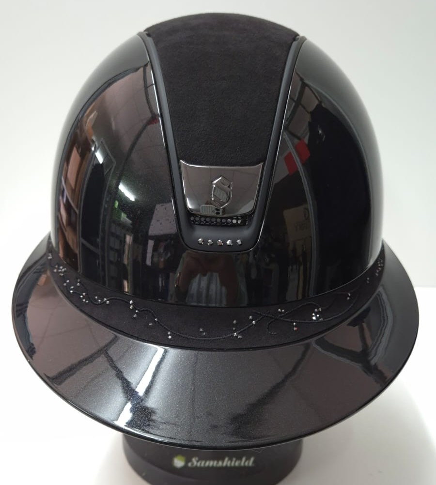 Samshield Miss Shadowglossy 2.0 schwarz Konfiguration Crystal leaf Frontalband und Top Alcantara mit Blazon 5 Swarovski Jet hematite