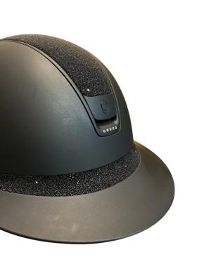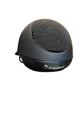Samshield Reithelm Miss Shadowmatt mit 5 Swarovski Steinen Black Crystal Top & Frontal Band verziert mit Crystal Fabric in schwarz, Blazon und Trim schwarz matt