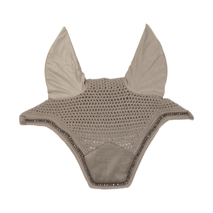 Die Fliegenmütze Wellington Stone & Pearl ist handgestrickt für lange Haltbarkeit. Die Glitzersteine und Perlen sind in der Farbe der Fliegenmütze, die somit sehr edel aussieht. Das Material um die Ohren ist flexibel und schmal geschnitten. Die Fliegenmütze schützt die Ohren des Pferdes beim Reiten vor Fliegen. Durch das dickere Material an den Fliegenohren wird das Pferd zusätzlich vor Geräuschen geschützt. Das Genickstück ist länger geschnitten, um ein Rutschen zu verhindern. Die Fliegenmütze hat kein sichtbares Logo und kann somit auch personalisiert werden. Nur von Hand waschen. Größe: FULL.