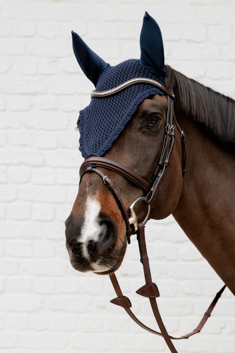 Die Kentucky Horsewear Fliegenhaube Long bietet zuverlässigen Schutz vor Fliegen und sorgt für ungestörte Konzentration beim Reiten. Dank hochwertiger handgestrickter Verarbeitung, verlängertem Nackenteil und der langen Front, die am Nasenriemen befestigt wird, sitzt die Fliegenhaube sicher und verrutscht nicht. Das dehnbare Ohrmaterial gewährleistet einen angenehmen, passgenauen Sitz, während das schlichte Design ohne sichtbares Logo einen edlen Look bietet. Ideal für empfindliche Pferde, die auf Bewegungen reagieren.