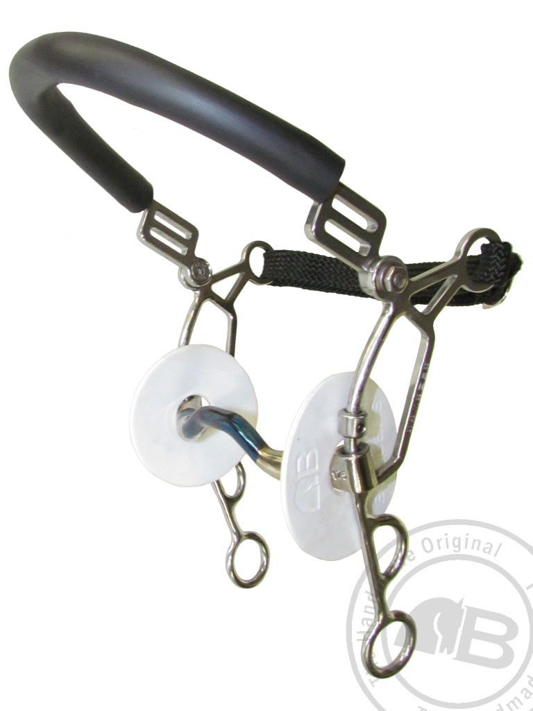 - Gepolstertes Nasenstück, Nasenriemen sitzt wie bei jeder mechanischen Hackamore über dem Nasenbein