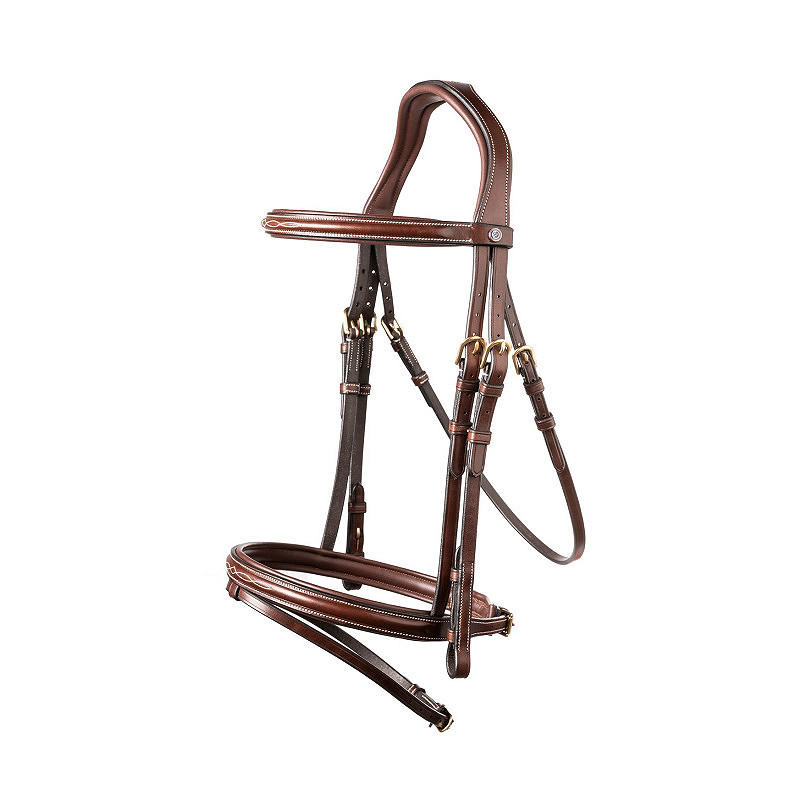 Das anatomisch geformte, an den Ohren zurückgeschnittene Genickstück sorgt für optimale Freiheit und angenehmen Tragekomfort. Die weiche, nicht zu dicke Polsterung ermöglicht einen direkten Kontakt zum Pferd.