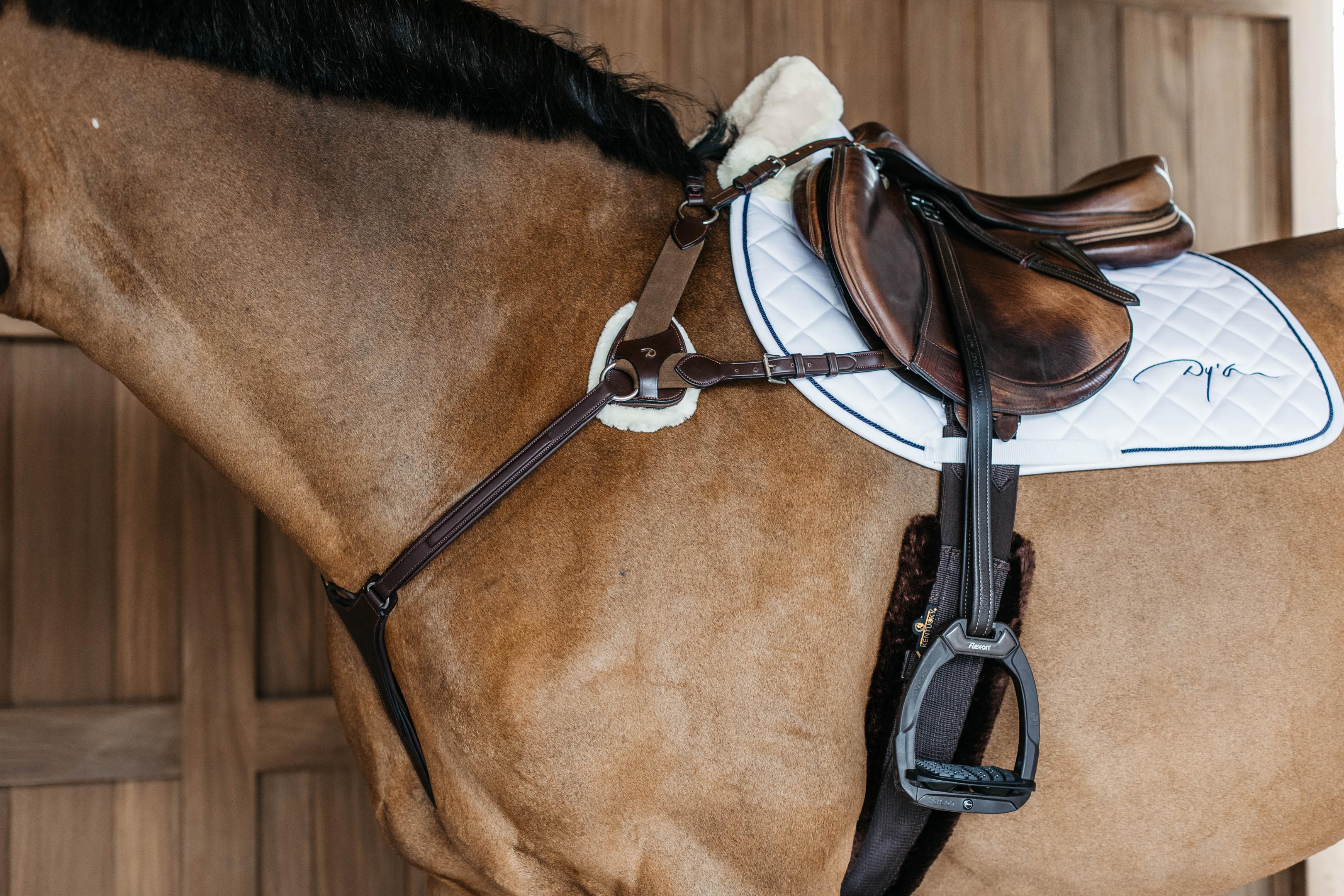 Vorderzeug mit 5-Punkt Befestigung und breiten Elastikeinsätzen von Dyon. Hilft dabei, den Sattel noch besser zu stabilisieren und an Ort und Stelle zu halten. Über den 5-Punkt-Aufbau wird Druck gleichmäßig verteilt, sodass nirgendwo unangenehme Druckpunkte entstehen. Die Elastikeinsätze sorgen für viel Bewegungsfreiheit.