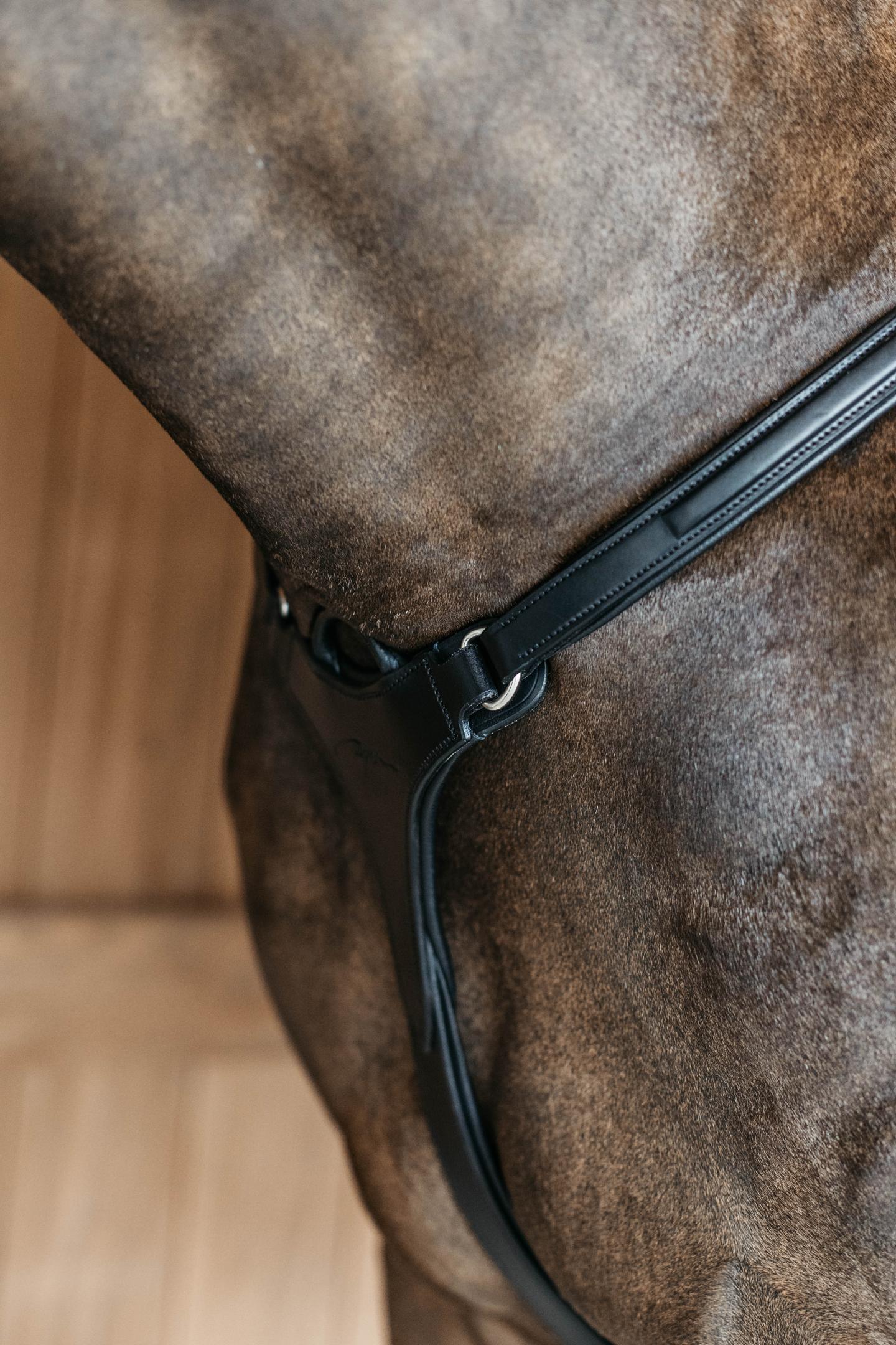 Vorderzeug mit 5-Punkt Befestigung und breiten Elastikeinsätzen von Dyon. Hilft dabei, den Sattel noch besser zu stabilisieren und an Ort und Stelle zu halten. Über den 5-Punkt-Aufbau wird Druck gleichmäßig verteilt, sodass nirgendwo unangenehme Druckpunkte entstehen. Die Elastikeinsätze sorgen für viel Bewegungsfreiheit.