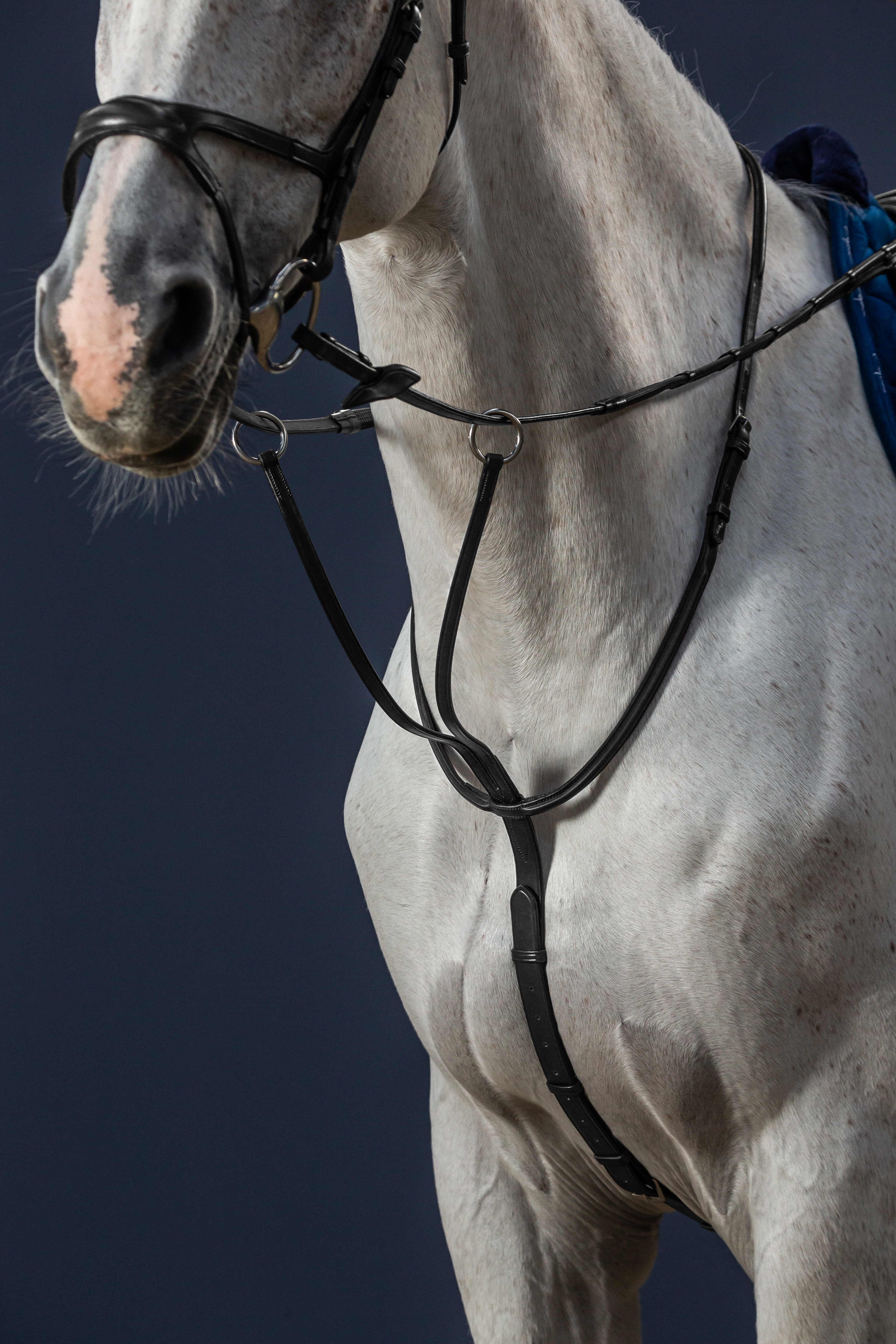 Einfaches Martingal von Dyon. Halsriemen kantig bombiert, wird mit einer Schlaufe am Sattelgurt befestigt.